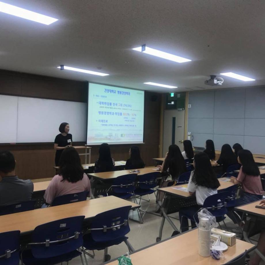 2018년 8월 11일 건양대학교 병원경영학과에서 고등학생들을 대상으로 입학 설명회를 진행하였습니다!