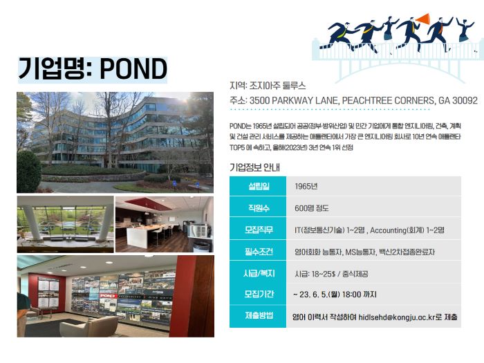 | 제목 | [국립공주대학교] 미국 우수기업 ‘POND’ 해외취업(J-1인턴) 채용 (~6/5) | ||||