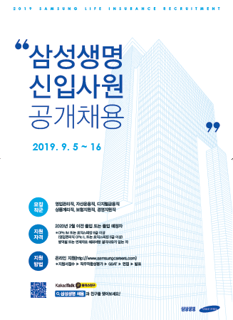 (~9/16) [삼성생명] 2019 하반기 신입사원 공개채용 안내 글의 상세내용