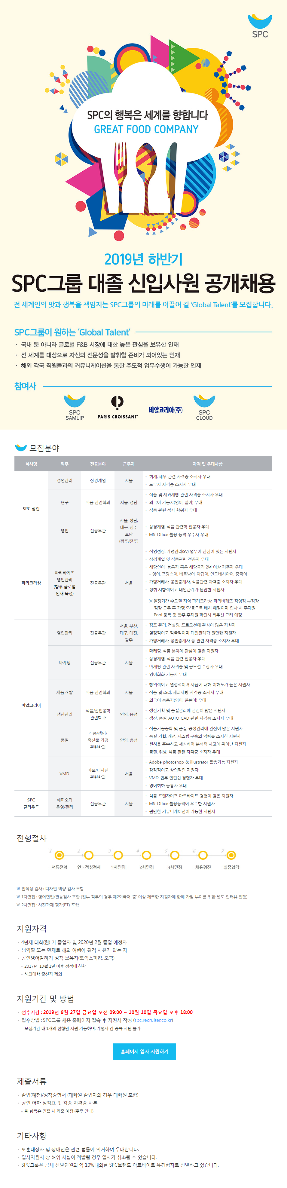 (~10/10) [SPC그룹] 2019 하반기 신입사원 공개채용 안내 글의 상세내용