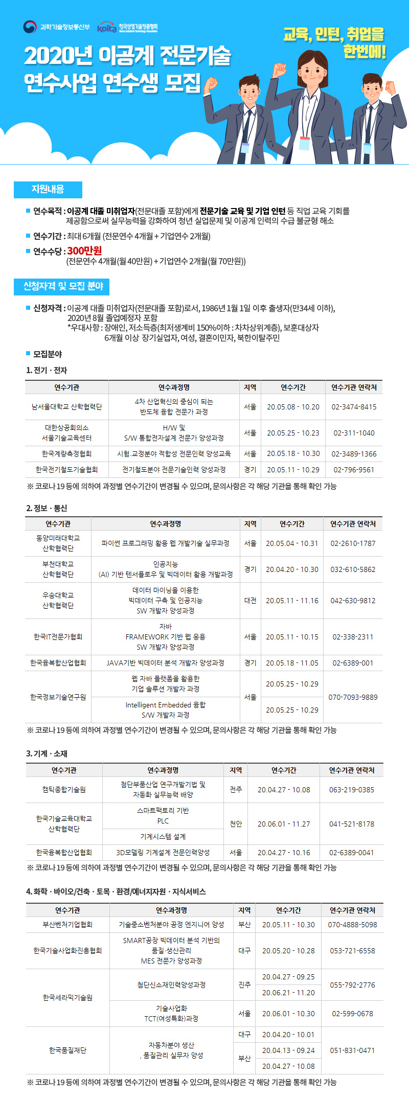 제목 2020년 이공계 전문기술 연수사업 연수생 모집 안내