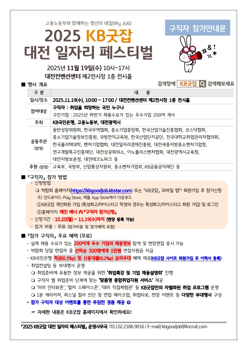 2025 KB굿잡 대전 일자리페스티벌(11/19) 글의 상세내용